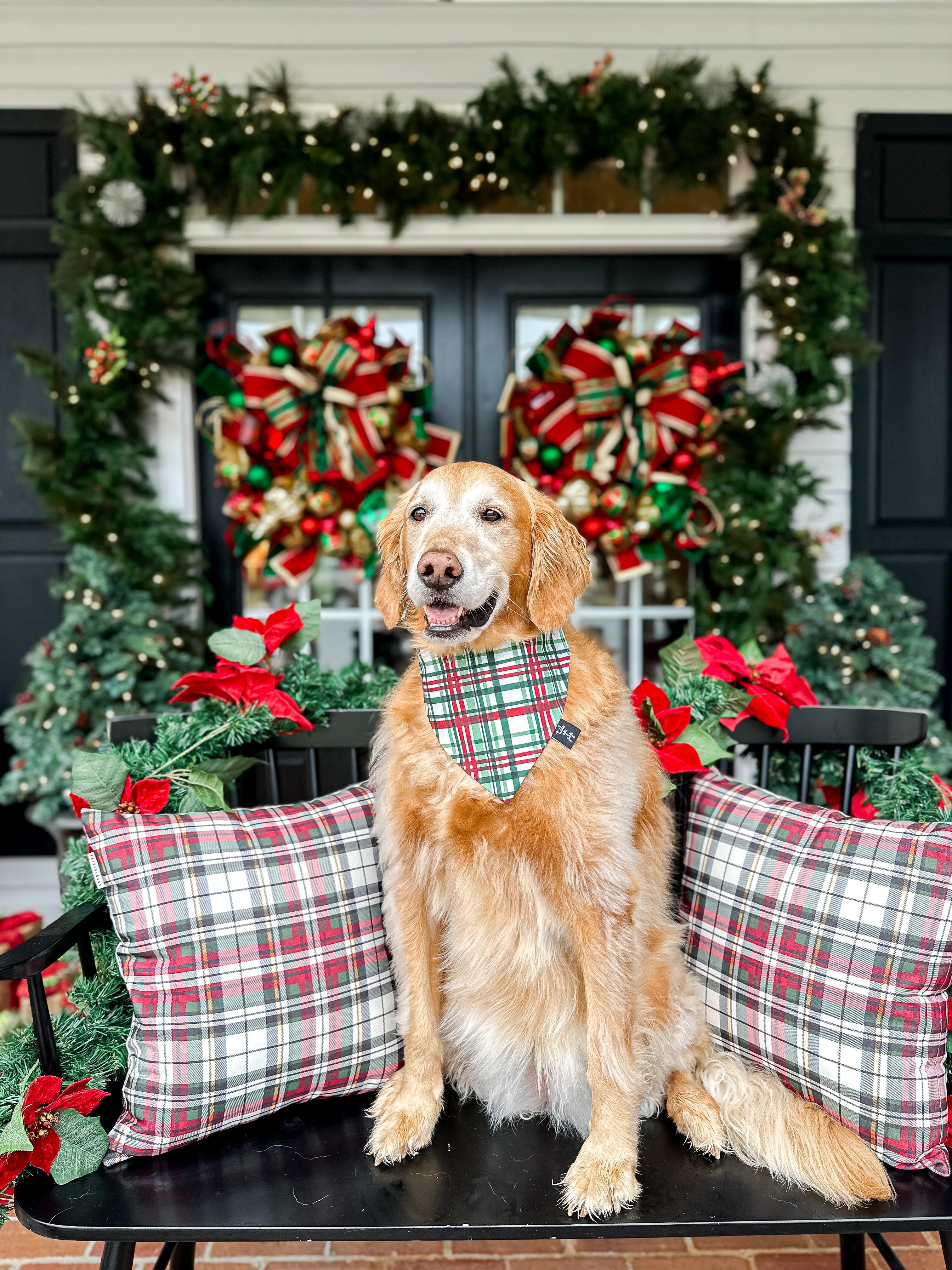 Our Evergreen Tartan bandana brings timeless holiday vibes with deep green, rich red, and snowy white plaid that’s perfect for cozy winter walks and family photos. It’s a classy, gender-neutral staple every pup can rock all season long. Handmade with love, this bandana adds just the right touch of Christmas spirit to your dog’s wardrobe.