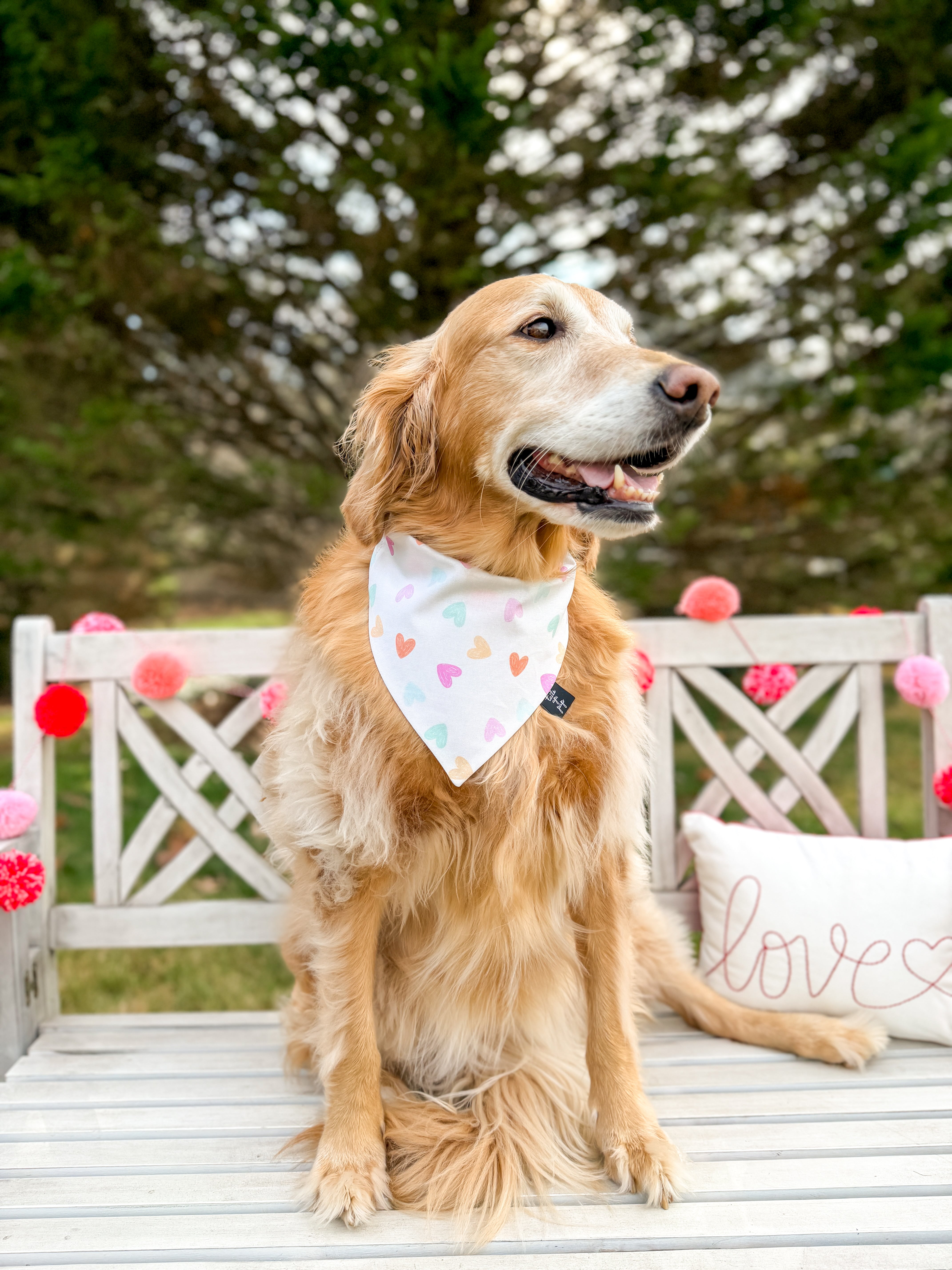 Cue the heart eyes šŸ˜ — this bandana is a pastel dream come true for Valentine’s Day! Featuring a scattered heart print in soft, sweet shades, it’s perfect for pups who love to keep things light, bright, and totally lovable. Whether you're heading to a Galentine's pup party or just snuggling at home, this bandana adds the cutest touch of love to every moment. Don’t forget to personalize it with your pup’s name for extra charm! šŸ’–šŸ¶