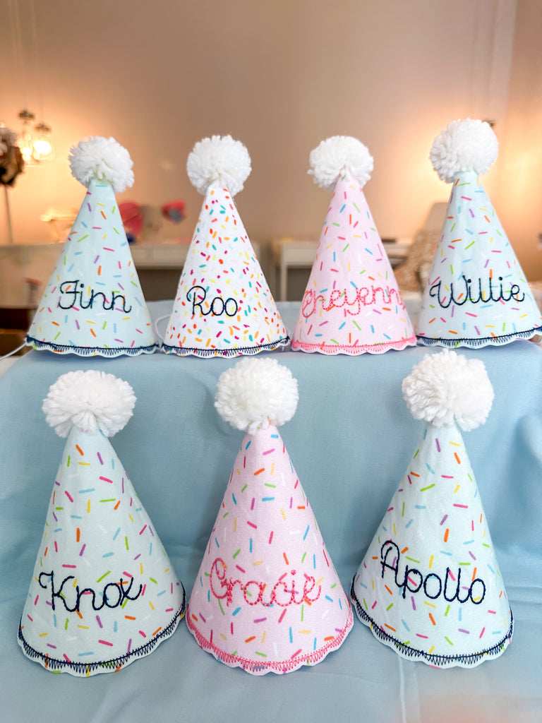 Make your fur babyโ€™s big day extra special with our handmade Personalized Birthday Hats โ€” the cutest party accessory your pup will ever wear! These sprinkle-covered hats are made with soft, comfy fabric and topped with a fluffy pom-pom for that extra pop of celebration ๐ŸŽˆ