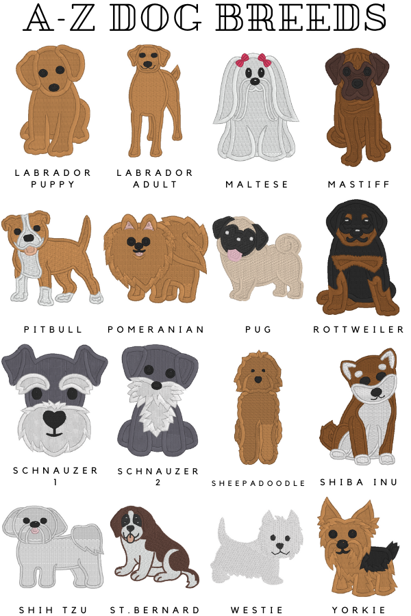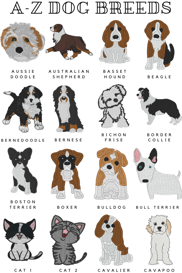 • Embroidered with your dog’s breed