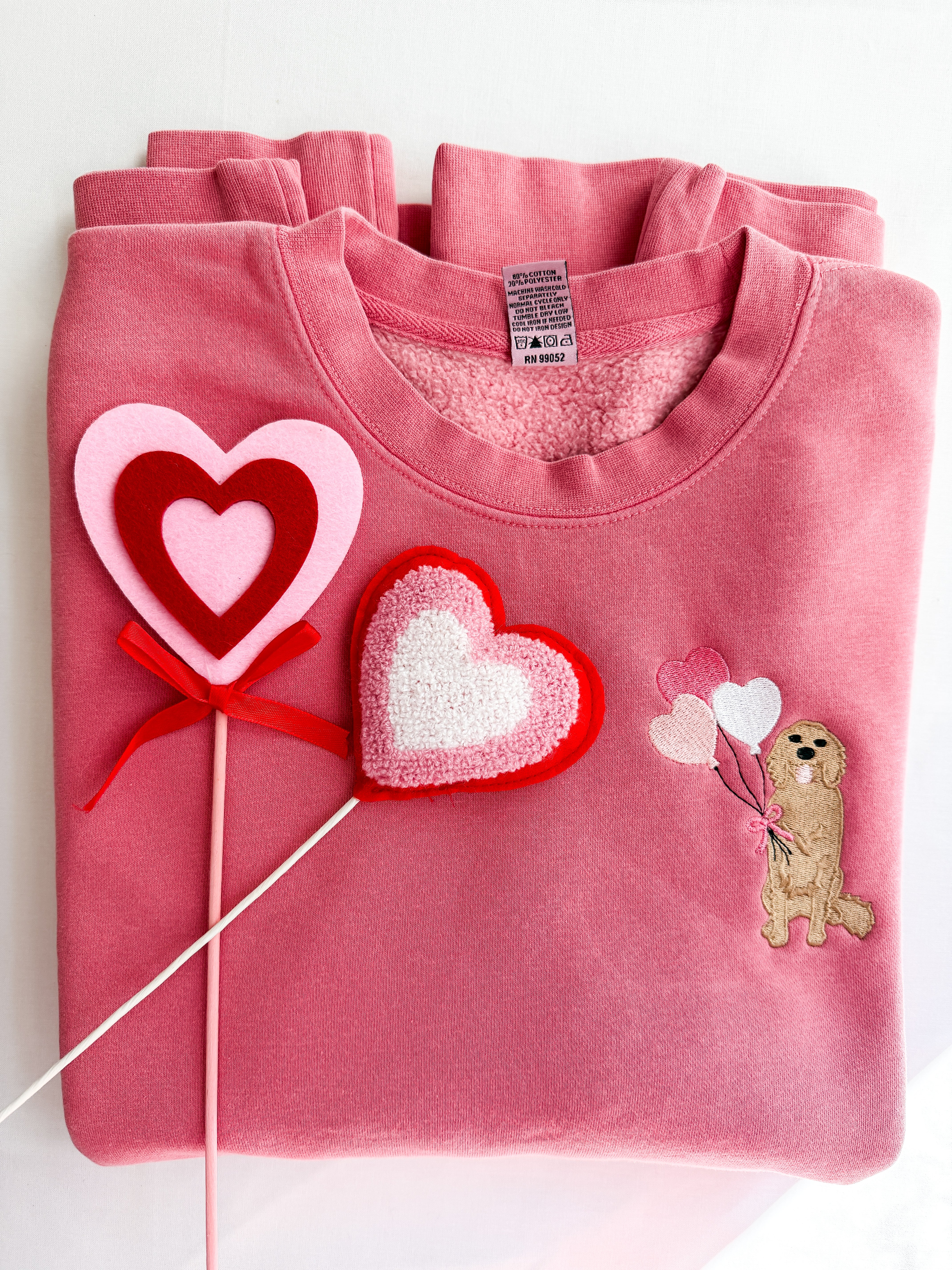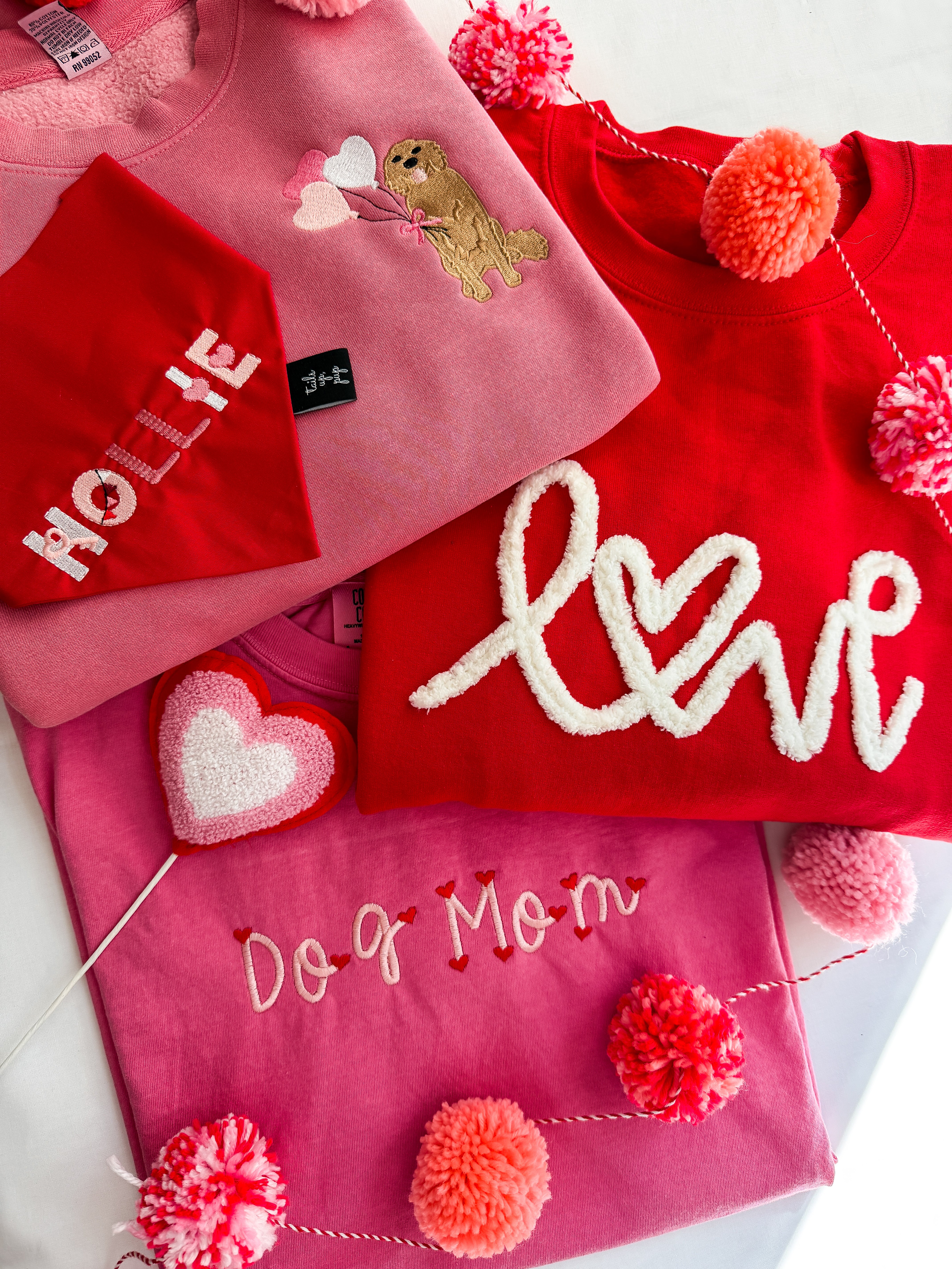 Choose your pup’s breed from our curated list (just swipe to see all your options!) and we’ll stitch it right alongside a festive little cluster of heart-shaped balloons. The pink fleece-lined crew is ultra-soft and made for dog mom adventures—from couch snuggles to coffee runs.