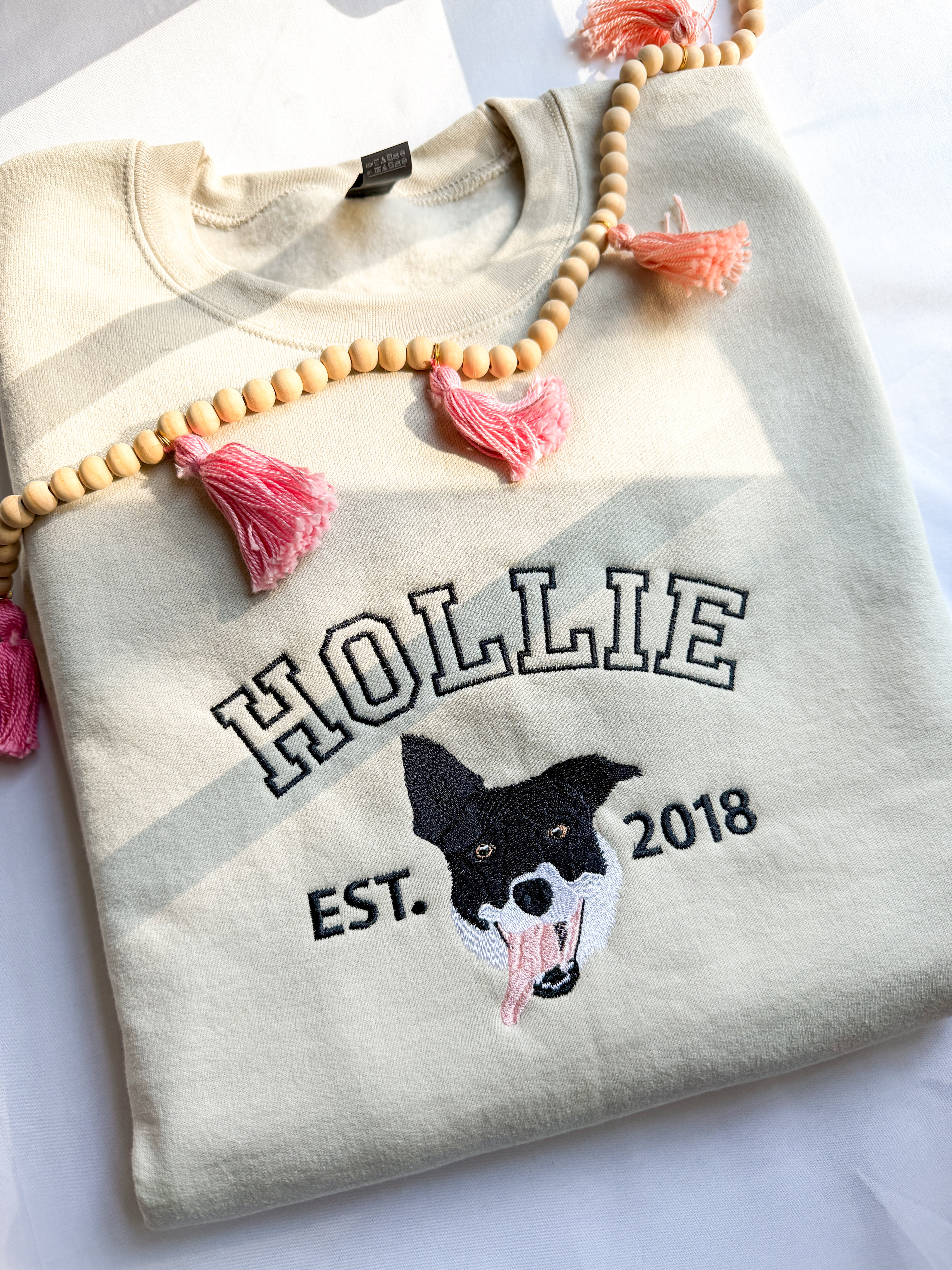 This custom embroidered sweatshirt is a heartfelt gift for any dog (or cat!) mom, pet lover, or yourself—because you deserve it! Every stitch is made to order with love, just like your pet deserves. 💗