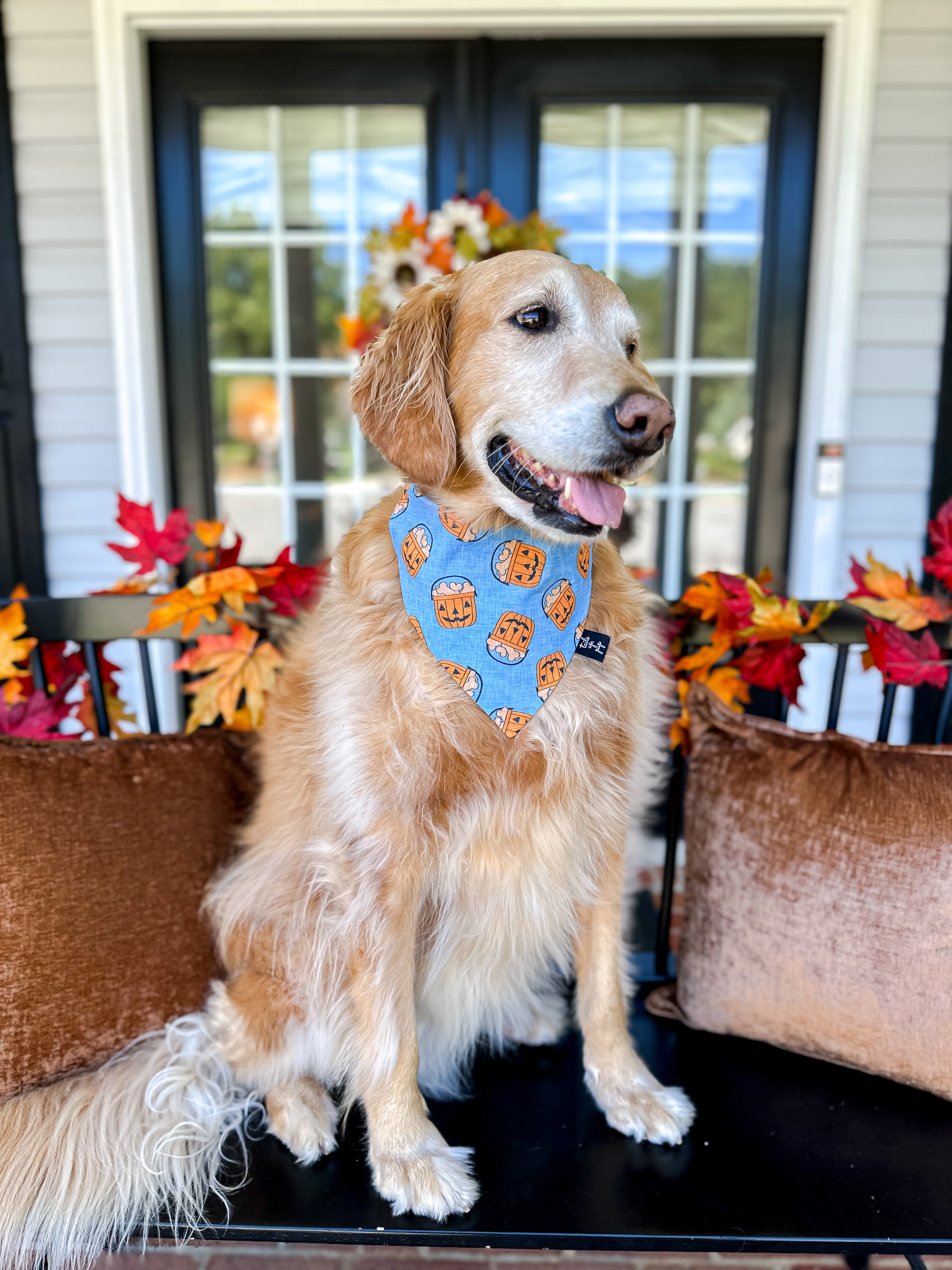 Gracie is a 70-pound Golden Retriever and is wearing a size medium slip-on bandana